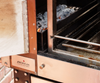 A discreet propane ignition system allows for effortless fire starting, transitioning seamlessly to pure wood heat for an authentic cooking experience.